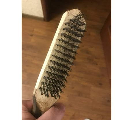 Щетка нормальная. Чистит, не облезает. Но плохая обработка деревяшки (снял звезду). Если работать в перчатках, норм. Без перчаток, можно посадить занозу.