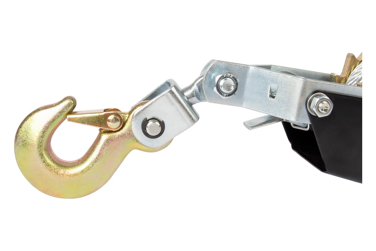 Ручная лебедка с двойным храповым механизмом KRAFT 1 т KT 705010 предназначены для перемещения грузов: при выполнении монтажных и демонтажных работ в строительстве или в быту, также позволяют легко отбуксировать застрявший автомобиль. Ручной инструмент удобен для натягивания различных тросов и проводов. Лебедки автомобильные с храповым механизмом полностью автономны, могут использоваться в любом пространственном положении без стационарного закрепления на месте. Наличие двойного храпового механизма делает использование максимально комфортным без прикладывания дополнительных усилий. Крюки с защелкой позволяют создать надежную фиксацию. Диаметр кабеля: 4,8 мм, 2,2 метра.