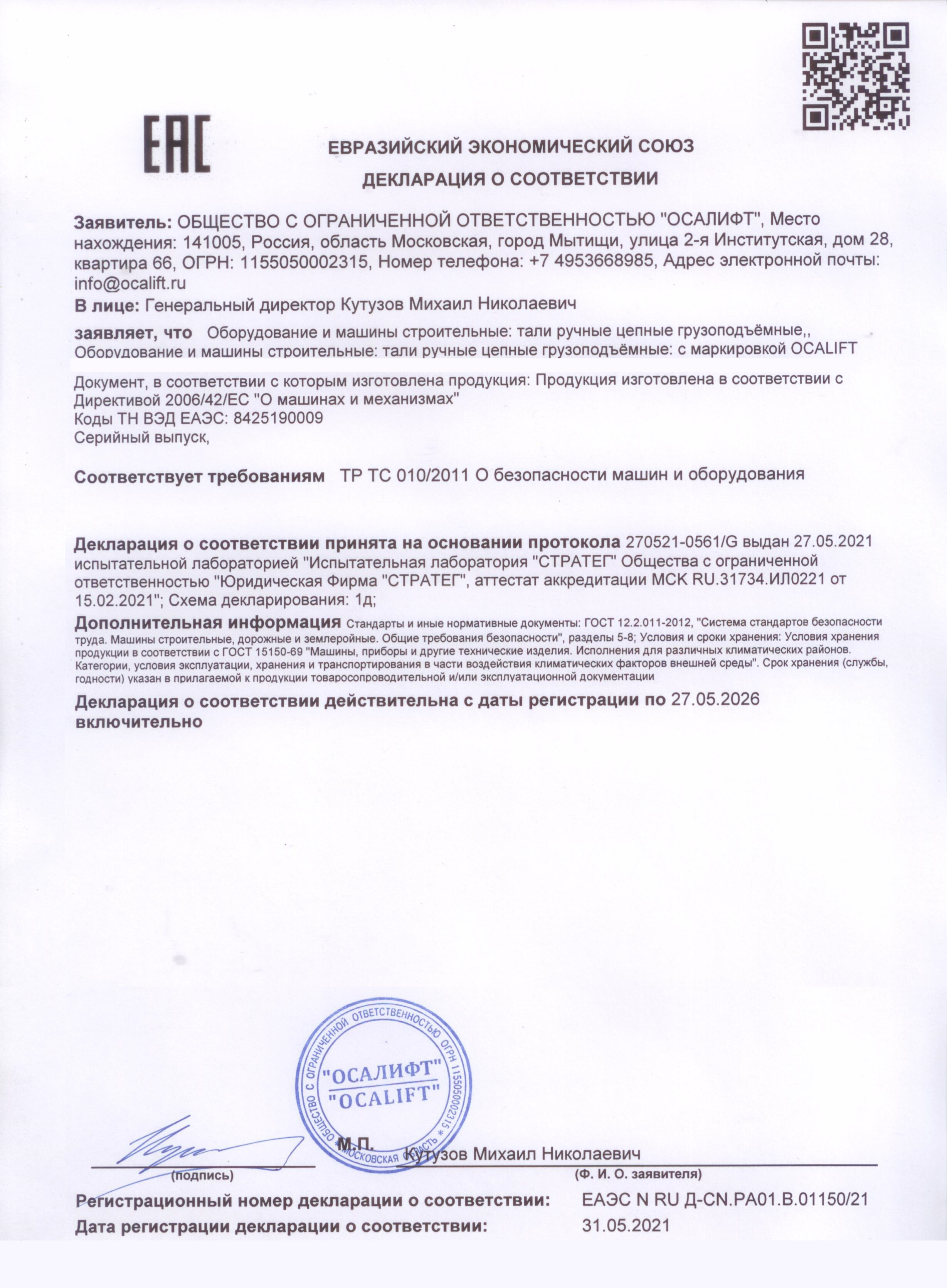 - Ручная шестеренная цепная таль OCALIFT SEVERE ТРШ 2т 12м sv200012 для работы на производстве на каждый день