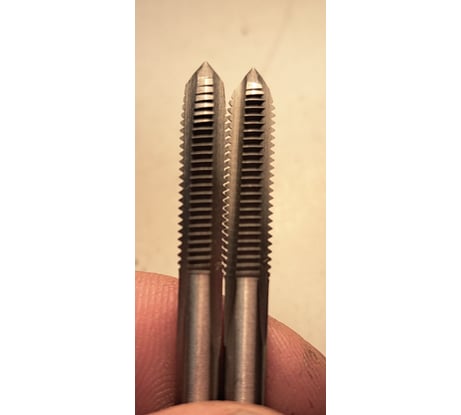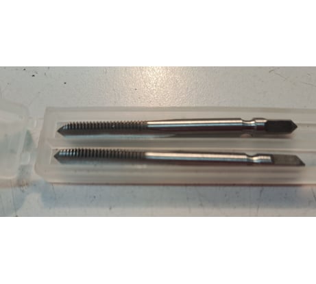 Комплект из двух штук - это просто два, практически, одинаковых метчика в коробочке. Именно не 1 и 2 номер, а два метчика 2 номера, то есть с полным профилем резьбы, просто заход чуть по разному отшлифован. На одном метчике чуть поострее, на втором - чуть потупее. Проверял на детали с отверстием 5мм - оба метчика начинают цеплять стенки отверстия, хотя настоящий первый номер должен в такое отверстие проваливаться. Фото в карточке товара пришедшие метчики не соответствуют. Ближе к хвостовику большая проточка. Отличия 1 и 2 номеров на метчиках никак не обозначены ( номера или полоски). Да, и в карточке товара показан только один метчик с маркировкой размерности резьбы. На этих - написано М5 Р6М5 и всё.