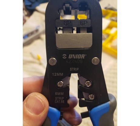 Купили один на пробу, хорошо себя зарекомендовал. Позже купили в организацию 6 шт. Опыт эксплуатации около года, за это время через них прошла не одна тысяча патчей. Легкий прочный, в руке лежит удобно. В отличие от других массивных обжимников, очень компактный, однозначно рекомендую к покупке.