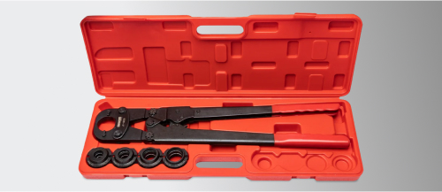 Ручной обжимной пресс для монтажа МПТ стандарт ТН Rotorica JT-1632B предназначен для работы с металлопластиковыми трубами системы типа Henco. Рабочие диаметры: 16, 20, 26 и 32 мм. Специальная ручка с изменяемым углом позволяет проводить обжим фитингов больших размеров.