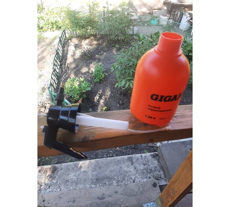 Помповый опрыскиватель Gigant позволяет распылять жидкости для различных работ в доме и на садовом участке. Регулируемая форсунка позволяет равномерно распределять средства по поверхности. Емкость вмещает 1,25 литра жидкости.