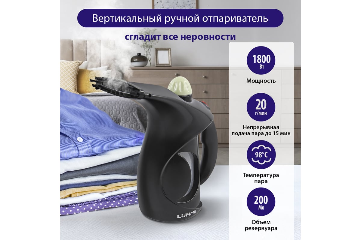 Ручной отпариватель для одежды LUMME черный нефрит LU-4020 36991