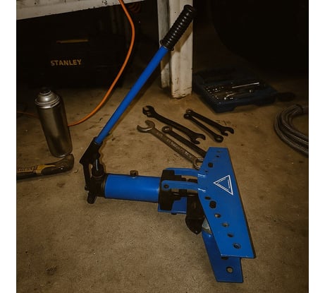 Для сгибания труб взял гидравлический трубогиб — чтоб не мотать руками и без царапин. Работает мощно, ручка удобная. Металл крепкий, никаких подтёков масла, сварка нормальная. За несколько месяцев пользования поломок никаких.