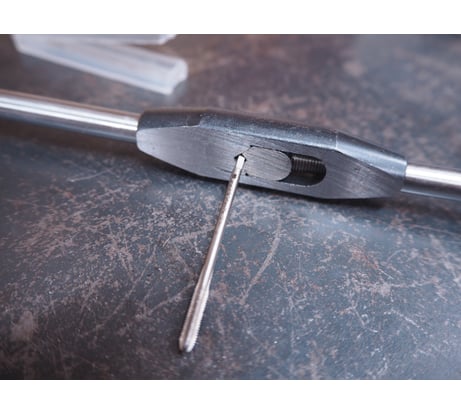 Для мелких метчиков решил вопрос ручными тисками. Смотри фото. 2. Часто пользуюсь шуруповертом, где крутящий момент выставляется минимальный, чтобы не сломать метчик. В процессе нарезки резьбы крутящий момент регулируется