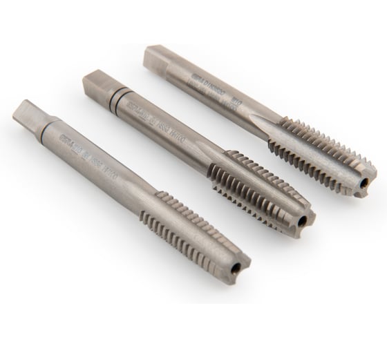 Ручные метчики GSR M10х1,5 HSSG DIN352 6H набор 3 шт для глухих и сквозных отверстий B00105230 для метрической ISO-резьбы М состоит из трёх метчиков - первый (черновой), средний (получистовой) и третий (чистовой). Метчики до М6 имеют утолщённый хвостовик и 3 канавки.