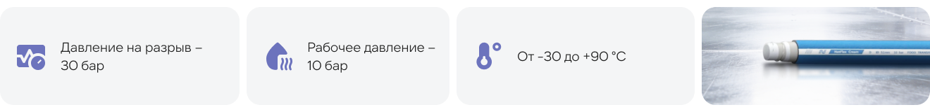 Промышленный рукав NetFlex Cream D - Напорный рукав для пищевых продуктов. Для транспортировки пищевых продуктов, таких как животный жир, растительное масло и другие пищевые жиры, требующие рукав с санитарным допуском FDA. Также подходит для транспортировки мороженого и других молочных продуктов