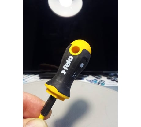 Неплохая ручка битодержатель чуть меньше своих конкурентов от Wera, более тонкая. Обрезиненная. Магнита внутри нет, шарик в конце ручки.
