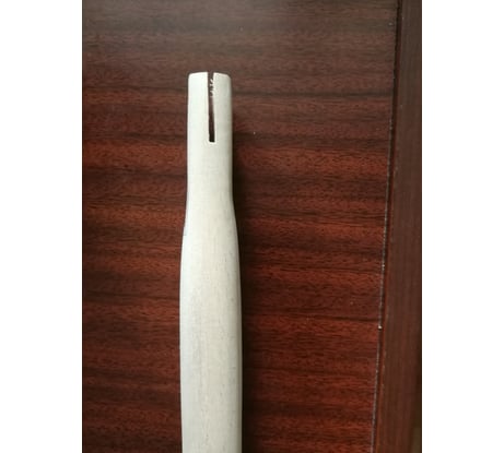 Фото добавил в шапку товара. Торец рукоятки обточен и пропилен под клин, т.ч. размер под топорище по толщине 15мм, по ширине 39 мм.