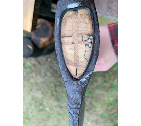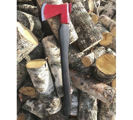 Ни к одному типу топора и колуна не подходит. Кроме как к современным может быть. И к тому же наклейку приклеили в месте где было замазан отколовшийся сучок. И наклейка то добротная 1/4 часть топорища скрыла.