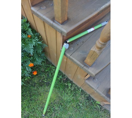 Рукоятка с красивой расцветкой - зеленая с фиолетовыми полосами, радует глаз, когда моешь пол. Подходит ко всем насадкам практически. Не очень хлипкая. По высоте не очень длинная.