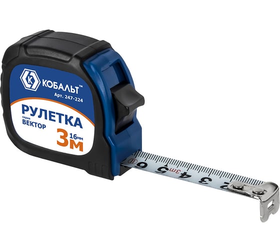 Рулетка (3 м x 16 мм, обрезиненный корпус) КОБАЛЬТ Вектор 247-224