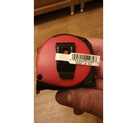 Первое - зацеп маленький, односторонний, как в обычных бюджетных рулетках Второе - шкала с разметкой с одной стороны, это как бы не минус, но даже в некоторых дешёвых рулетках шкала с двусторонним исполнением. Третье - место под ремешок на руку есть, а самого ремешка нет. Я им как бы не особо пользуюсь, но если корпус отлит и подразумевает, что он там должен быть, то где же он? Четвёртое - корпус рулетки не обрезинен от слова совсем, но правда пластик качественный и мягкий, при лёгких падениях сразу не посыпется. Пятое - и самоё главное, нейлона на покрытие, как было заявлено в описании, не обнаружено!