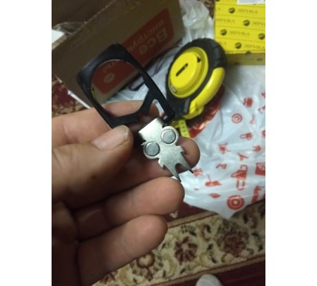 Крепление для клипсы почти сразу сломалось (держалось на крохотном шурупе), да и не удобно носить такую рулетку на поясе, слишком тяжёлая.