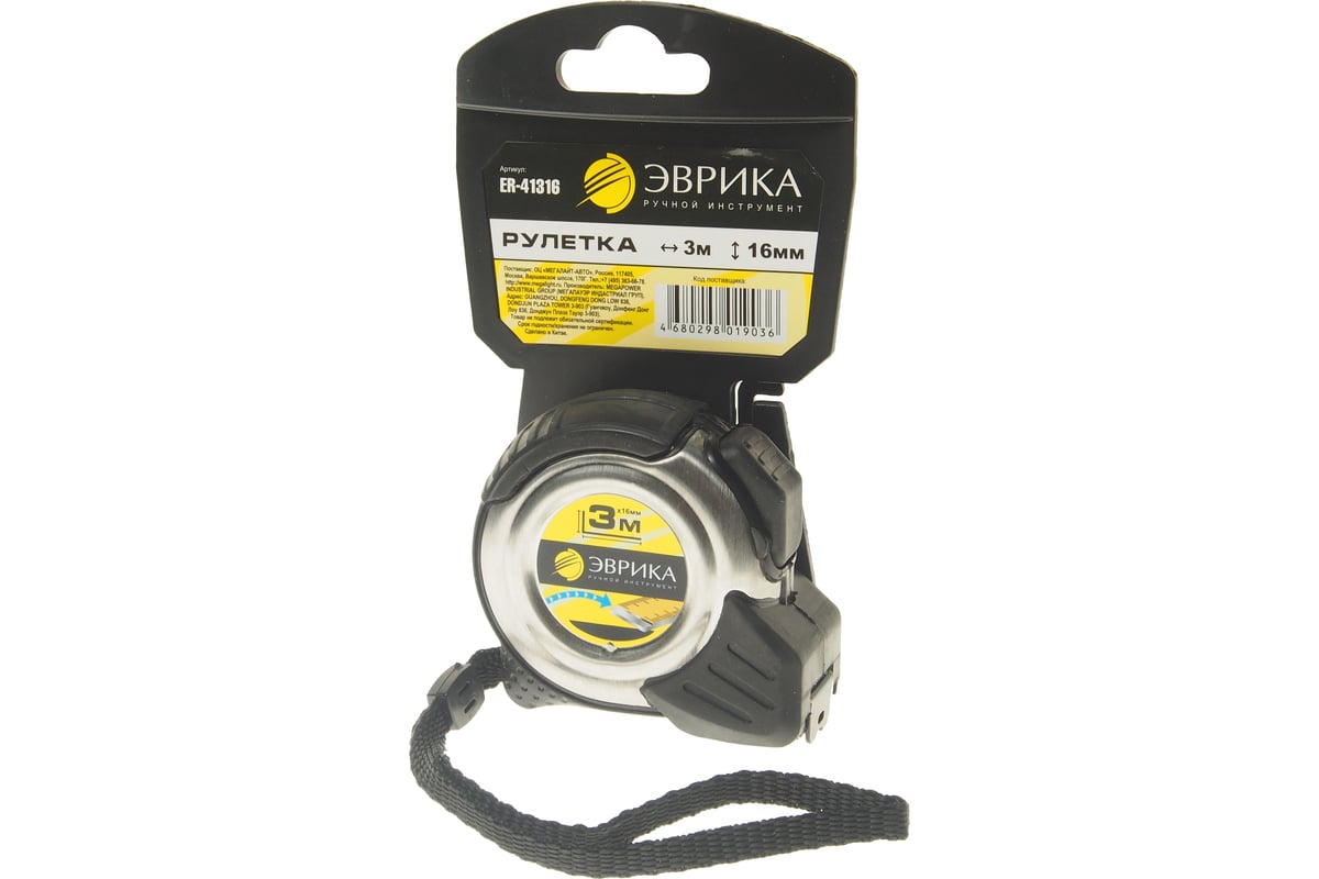 Рулетка ЭВРИКА 3м 16мм SILVER металлический корпус с двумя фиксаторами с держателем ER-41316 обеспечивает процесс измерений деталей различной формы, а также помогает при проведении строительных и отделочных работ.