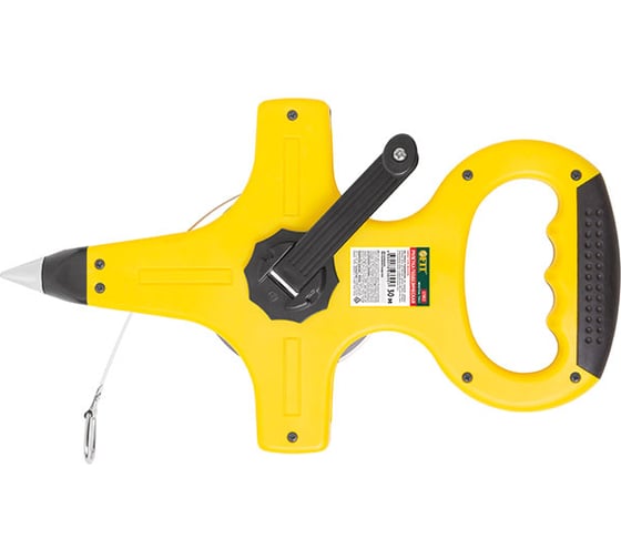 Рулетка геодезическая FIT стальная лента, желтый открытый пластиковый корпус, прорезиненная ручка 100 м 17804