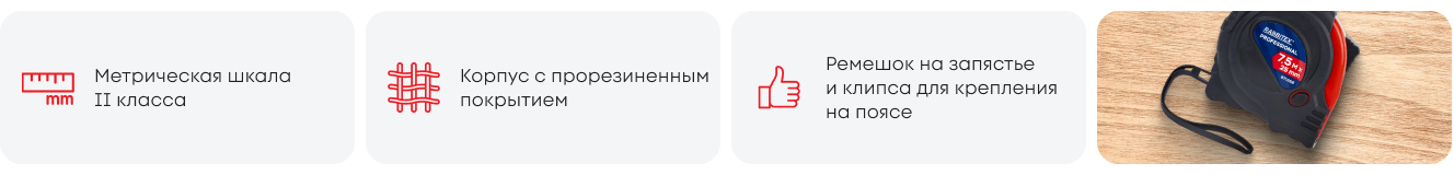 Рулетка измерительная RABBITEX 7,5мх25мм, Professional, обрезиненный корпус, 3 мех. фиксац 671358