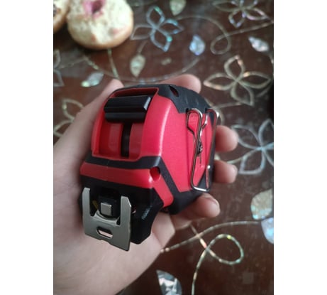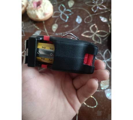 Для замеров 4-8 метров лента не очень торопится возвращаться в корпус, это прям бесит до того что хочется уже выкинуть эту рулетку, какого черта надо делать такой длины рулетку если с ней не возможно работать одной рукой. И весь смысл задержки пальцем от этого теряется. Да ну нафиг. Это то даже не лечится подтягиванием пружины. Клипса из проволоки слишком жёсткая, в специальное место для рулетки в подсумке тафтбилд заходит с трудом, а вытаскивается только при помощи второй руки, блин, какого фига, за сам пояс цеплят так же не удобно, туго, если разгибаешь её, то на токих карманах уже не держится. На эту клипсу можно не то что рулетку повесить, она по-моему и sds-max выдержит. Не понимаю откуда столько пафоса вокруг этих рулеток.