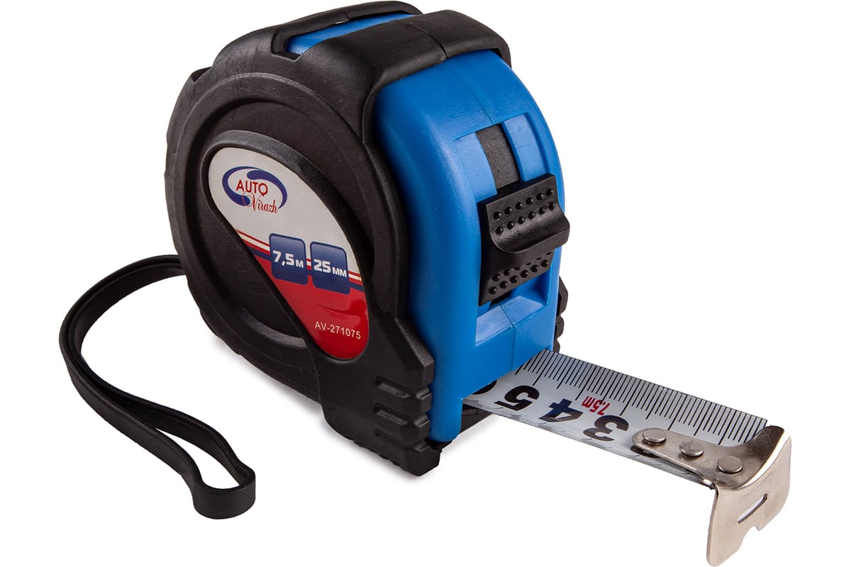 Рулетка обрезиненный корпус 7,5мх25мм AUTOVIRAZH AV-271075