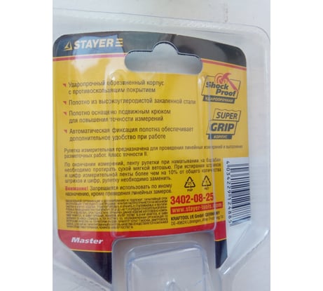Отзывы о рулетке с обрезиненным корпусом, 7,5мх25мм STAYER MASTER Autolock 3402-08-25