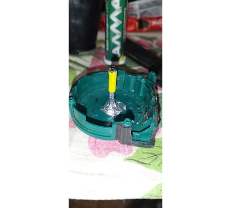 Очень тоненький стержень, который держит катушку. Из-за неаккуратного обращения сломался. Посадил пока на холодную сварку и потом по кругу основание проклею алюминиевым скотчем.. надеюсь ещё послужит..