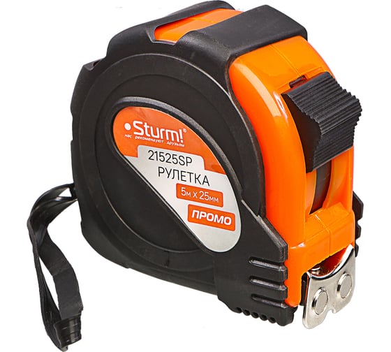 Рулетка Sturm 5x25мм, обрезиненная, магнит на зацепе 21525SP
