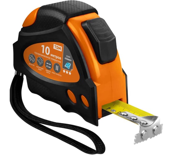 Рулетка TDM ELECTRIC 10 м х 25 мм, тройная фиксация, автостоп, обрезиненный корпус, магнит, Алмаз SQ1018-0112