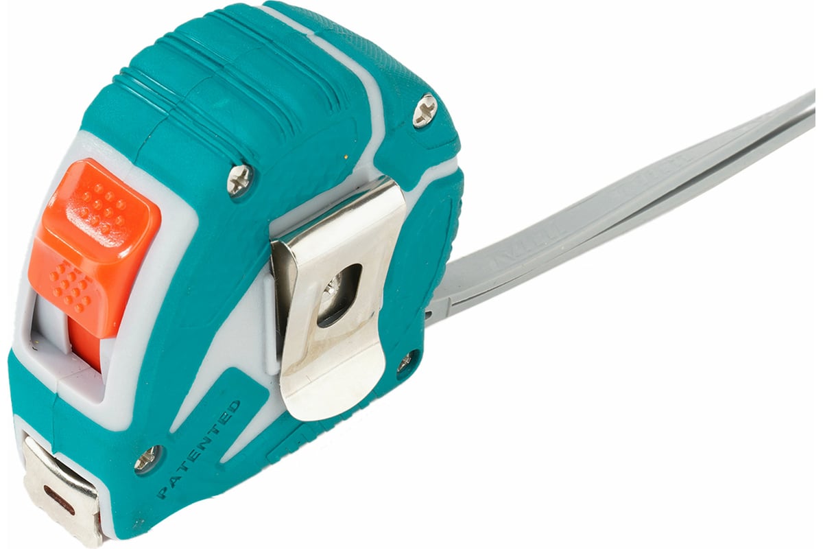 Рулетка TOTAL 5 м, 19 мм, обрезиненный корпус TмT126051м используется при ремонтных, строительных работах для измерения поверхностей. Инструмент имеет компактные размеры и оснащен ремешком для удобного ношения. Прорезиненный корпус и кнопка с тройной фиксацией обеспечивают удобство работы. Предусмотрено специальный механизм блокировки полотна, чтобы исключить автоматическое сматывание ленты.