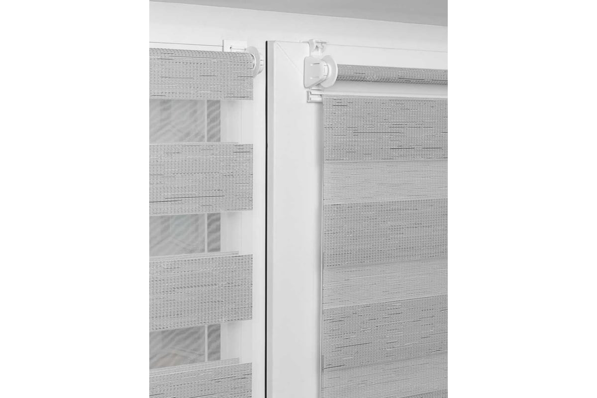 Штора состоит из двух слоев ткани разной прозрачности. Перемещая слои друг относительно друга, можно создать нужный уровень освещения и приватности.