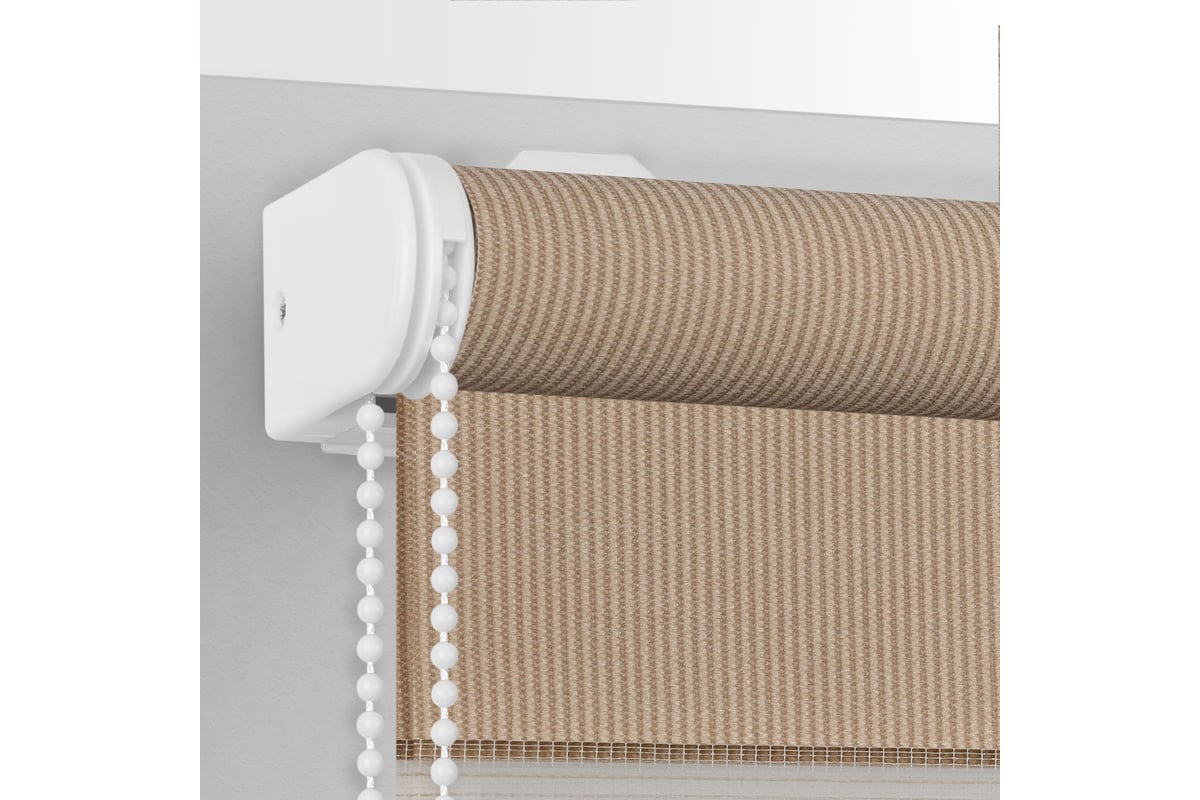 Рулонная штора PRAKTO Day&Night 180х175см бежевый 8312050 cостоит из двойной ткани, что позволяет регулировать количество света, попадающего в комнату.