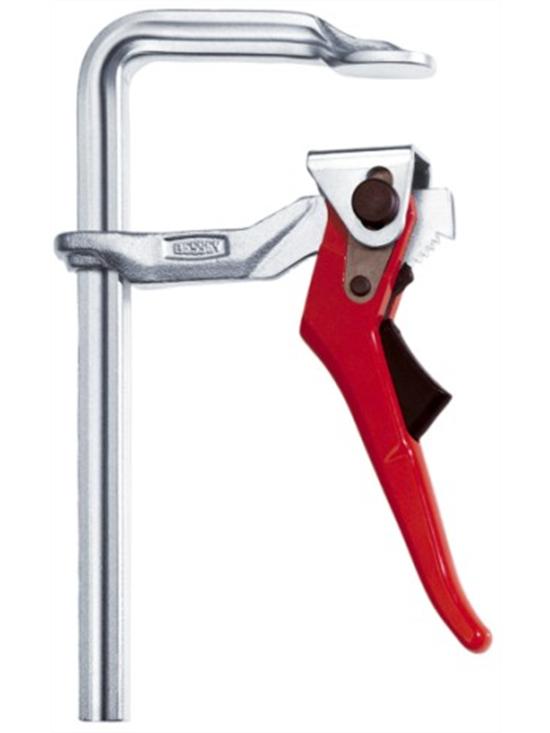 Рычажная струбцина BESSEY BE-GH30-10 применяется для удерживания и фиксирования заготовок при выполнении столярных и слесарных работ. Оптимизирующий профиль направляющей создает равномерное зажимное усилие на всей поверхности детали. Оно может составлять до 8500 Н. Инструмент способен зажимать заготовки в пять раз быстрее традиционных аналогов. Зубчатая скользящая скоба выполнена из штампованной стали, что значительно увеличивает устойчивость струбцины к высоким нагрузкам.