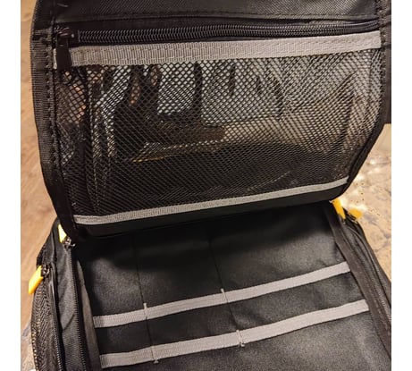 Рюкзак Denzel 90296 размером 365 х 190 х 430 мм, с 3 отделениями и 26 карманами (в том числе сетчатыми), предназначен для размещения и транспортировки ручного инструмента. 3 секции позволяют организовать упорядоченное хранение всех необходимых предметов. Рюкзак пригодится выездному мастеру.
