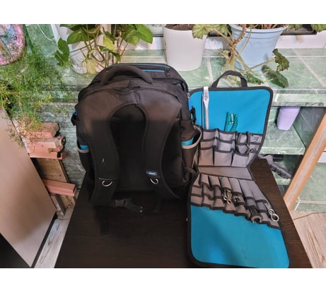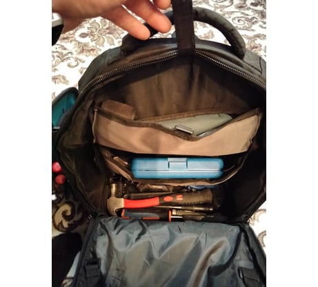 Отличный рюкзак для ручного инструмента (электромонтаж, ремонт). Срок использования 3 года, не маркий, обдуваю компрессором от пыли, пластиковое дно крепкое, очень удобная посадка на плечах в сравнении с рюкзаком квт с-17 - котором ношу аккум перф и доп инструмент. Переноска от машины до объекта 50-300 метров.