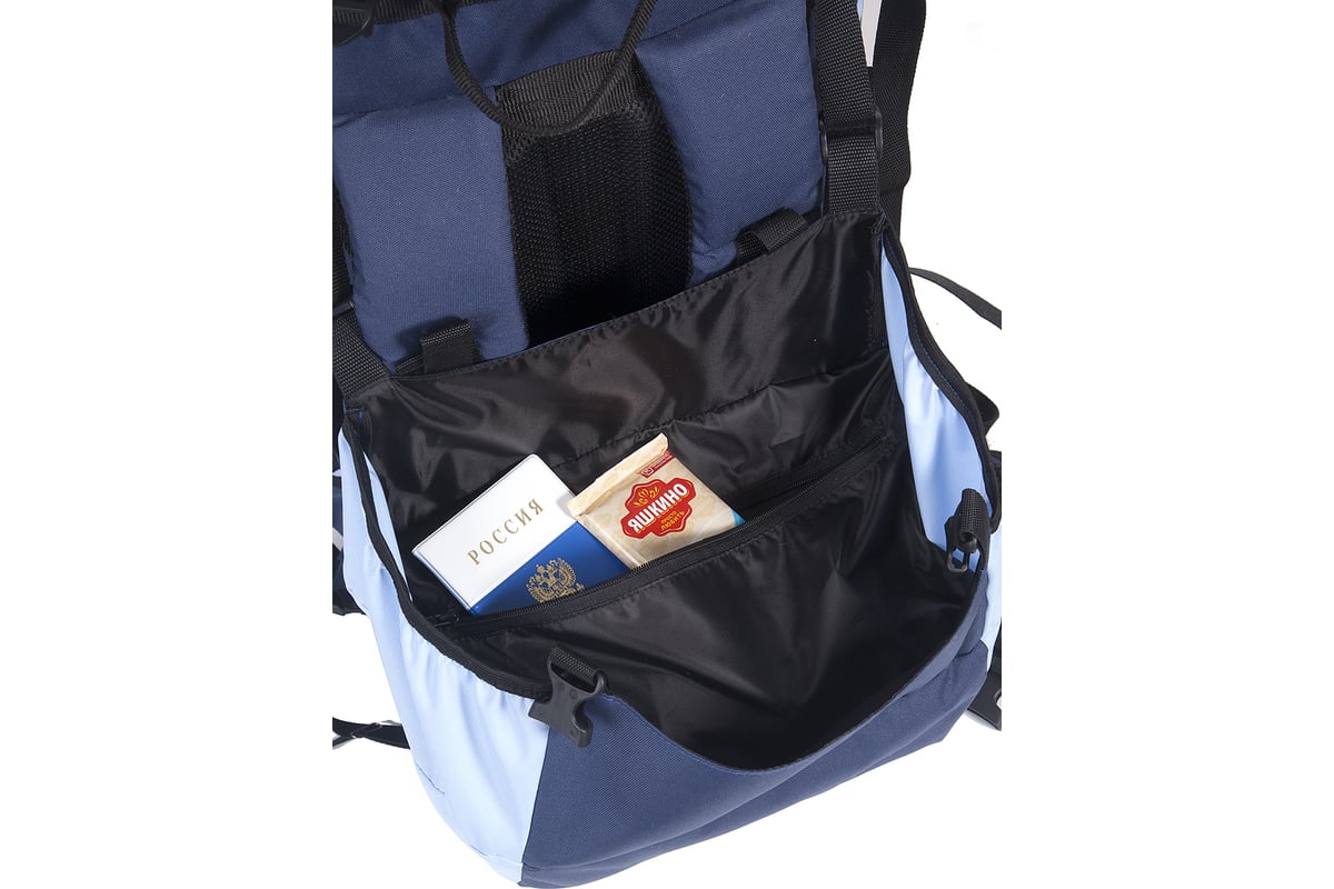Продуманы и специально сконструированы карманы: боковые – для термоса, очков, средств гигиены, фронтальный – для посуды и запасов еды, фонарика, верхний в верхнем клапане – под аптечку и внутренний на молнии – под документы.