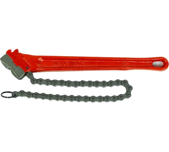 Цепь длиной 460 мм плотно охватывает заготовку и фиксируется в зубчатом упоре, передавая усилие без проскальзывания.