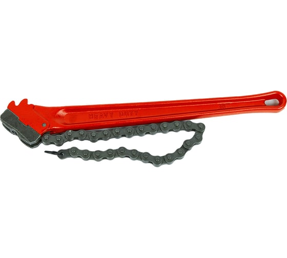 Цепь длиной 500 мм полностью охватывает заготовку и фиксируется в зубчатом упоре, надёжно передавая крутящий момент.
