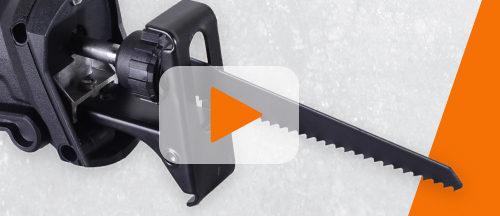 Пила работает по принципу ручной ножовки, но наличие электропривода позволяет обойтись без особых физических усилий. Включение производится посредством нажатия кнопки, которую можно зафиксировать, чтобы не держать всё время. В комплектацию инструмента входит пилка по дереву, которая обеспечит глубину распила 150 мм. Наличие быстросъемного универсального патрона позволяет быстро произвести замену. При установке соответствующей пилки можно производить распил металла на глубину 15 мм. Благодаря электронной регулировке частоты можно настраивать скорость пиления под разные материалы.
