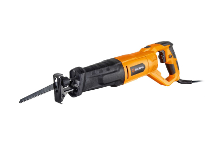 Сабельная пила весом 2,6 кг оснащена надежным корпусом с эргономичной ручкой. Регулировка упора производится посредством рычага, без необходимости использовать дополнительный инструмент. Модель имеет функцию поворота корпуса на 90 градусов, что упрощает процесс пиления в разных положениях, труднодоступных местах, а также подсветку для работы при плохом освещении. Длина кабеля составляет 2 м, что позволяет использовать инструмент в относительной удаленности от розетки.