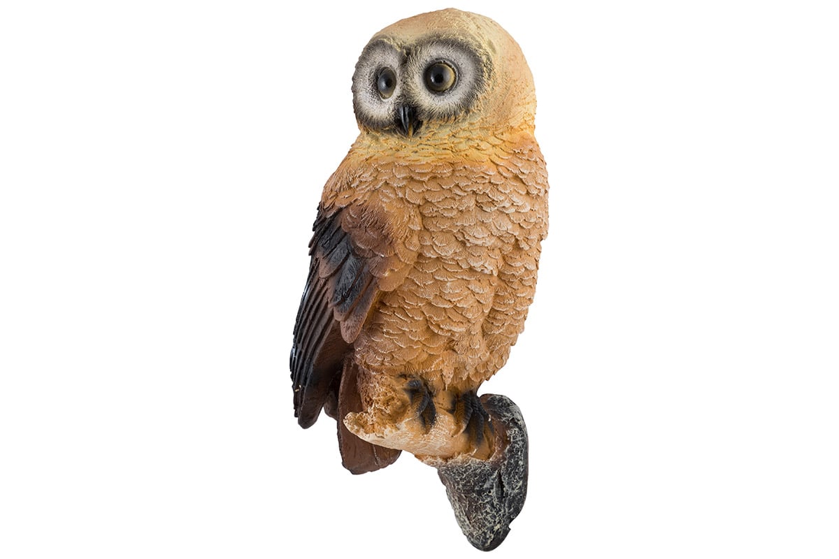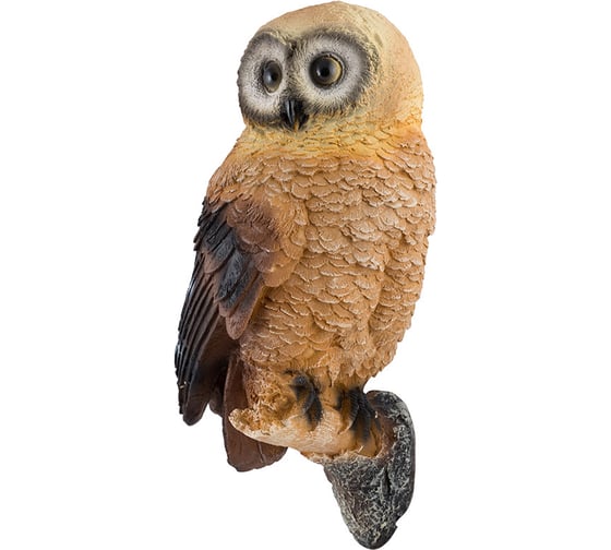 Симпатичная фигурка. Похожа на настоящую птицу если смотреть метров с 5. Размеры не соответствуют описанию-процентов на 15 меньше заявленных. Длинна самой совы 22,5 см. Еще 4 см длинна подставки. Всего не более 27 см, а не 31 см как указано. На подставке под наклейкой с ярлыком есть 2 дырки для крепления. Шляпки саморезов в них не проходят-надо расширять и делать проточку вверх как в мебельных подвесах.