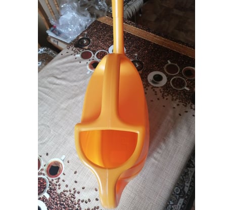 Удобная: легко набирать воду, объем не тяжел для переноса женщиной. Удобно расположены ручки и для переноса и для полива.