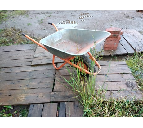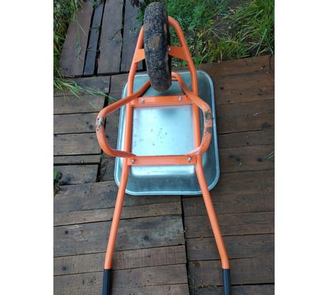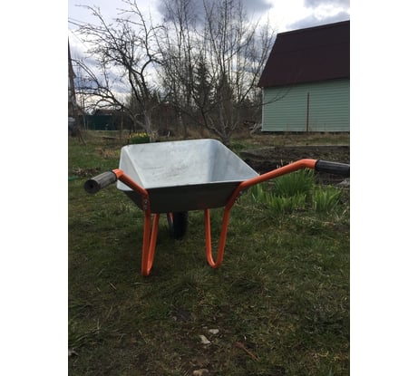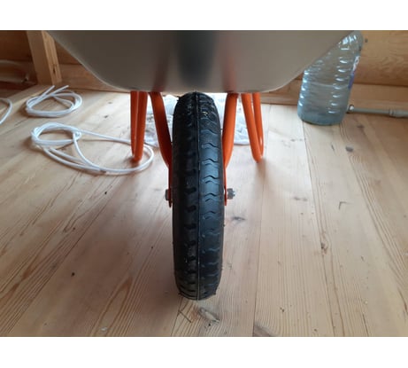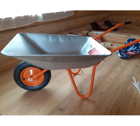 Отличная садовая тачка, за приемлемые деньги. Нужно понимать, что она садовая, а не строительная. Тогда не будет вопросов о недостаточной жёсткости корыта. Тонны раствора в ней не перевезти. Её стихия: перевозка земли, листвы, саженцов и.т.д. Колесо не болтается и не кренится, стоит ровно, как ему и положено. Рекомендую.