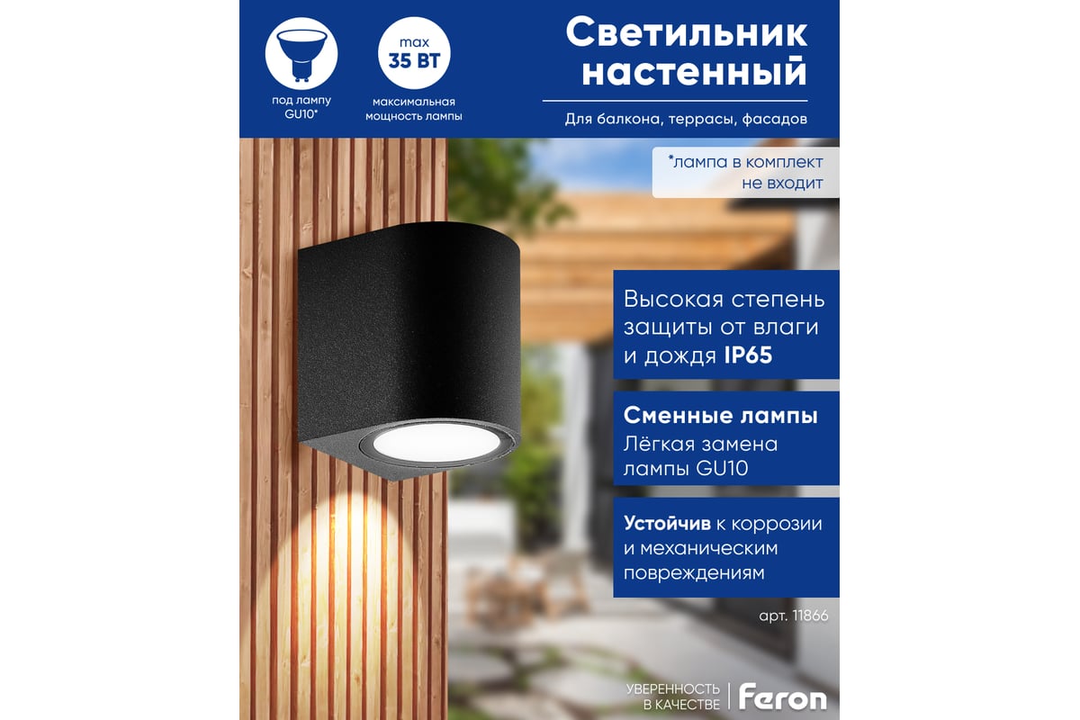 Садово-парковый светильник на стену FERON DH014 230V без лампы GU10, черный 11866