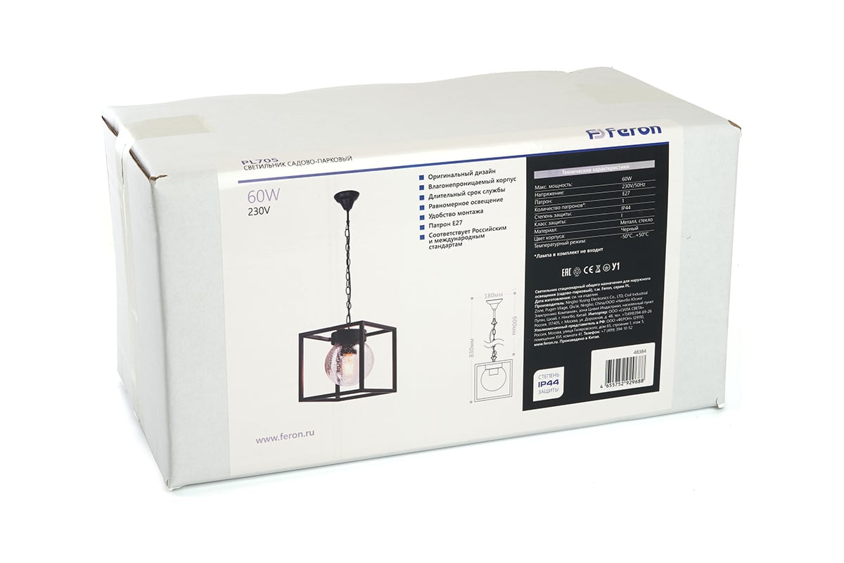 Садово-парковый светильник FERON PL705 на цепочке 60W E27 230V, черный 48384