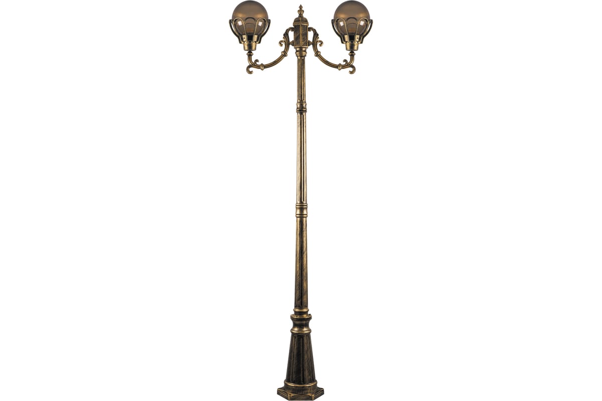 - Высокая степень пылевлагозащиты садово-паркового светильника, столб 2*60W E27 230V, черное золото Feron PL5048 11551 - IP44.