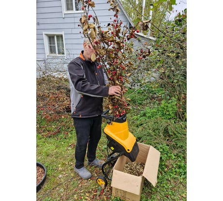 - Мощность 3200 Вт Позволяет измельчать ветки толщиной до 45 мм