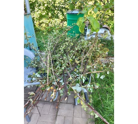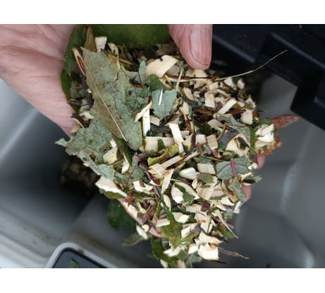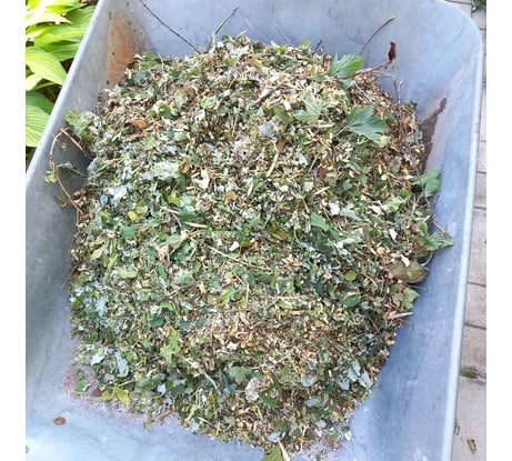 Перерабатывает всё😊 даже траву с толстыми стеблями. Далее ищмелченные стеьли идут от травы в грядки пои перекопке, от древесных веток - как мульча