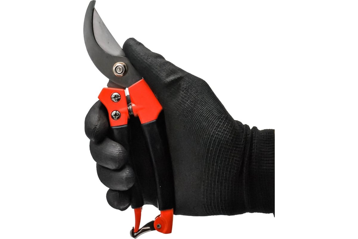Устройство секатора обеспечивает удобное и безопасное использование. Ручки изготовлены из прочного, нескользящего материала, что обеспечивает надежный и комфортный хват. Конструкция секатора также предусматривает наличие блокировки лезвий из металла, что позволяет безопасно транспортировать и хранить инструмент.