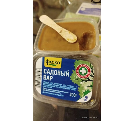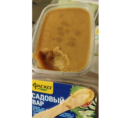 Очень удобен в работе за счёт упаковки в виде пластиковой коробочки. В комлекте деревянная ложечка-шпатель для нанесения вара на ранку. Сохраняет пластичность и хорошо прилипает к древесине даже при температуре около 0+5 градусов. Полупрозрачный, малозаметен на коре дерева. И наконец, низкая цена тоже имеет значение. 😉👍🙂 Рекомендую всем, кто ценит свои посадки, следит за ними и поддерживает в добром здравии. 👍