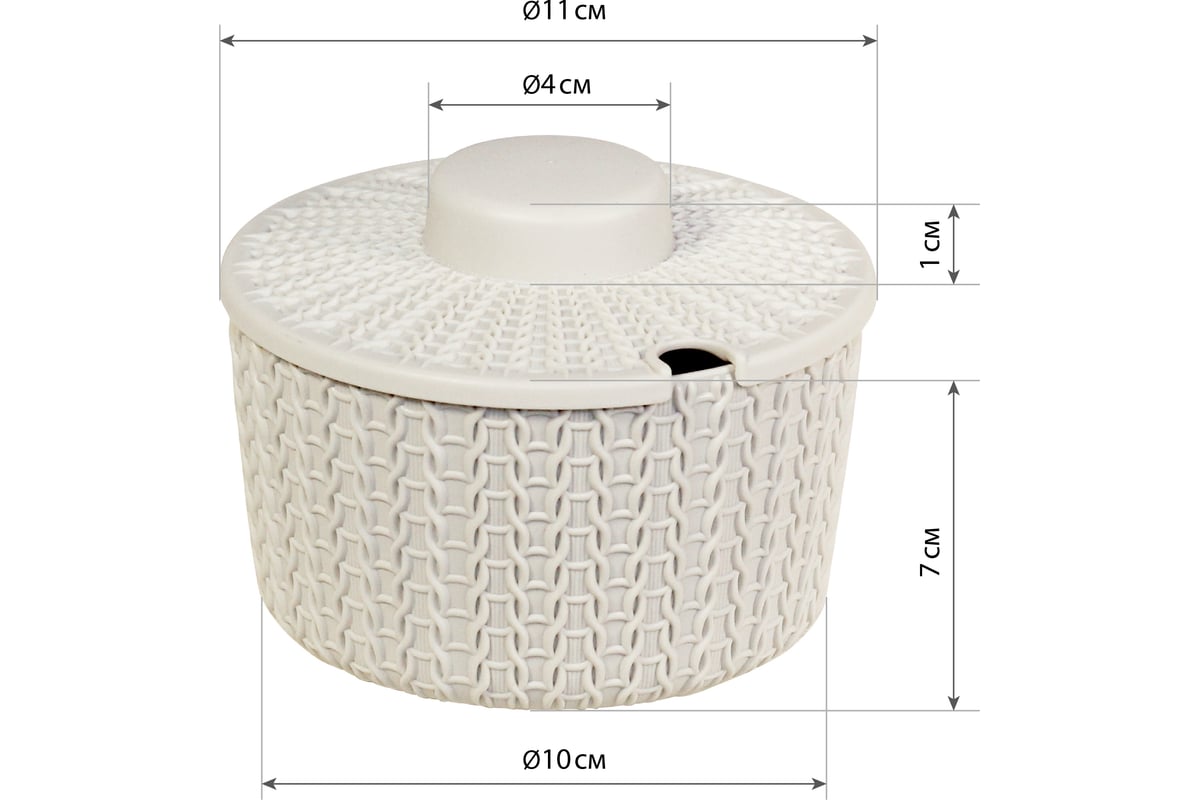 Сахарница IDEA ВЯЗАНИЕ 0,45 л М 1197 украшена вязаным плетением. Плотно закрывается крышкой с удобной ручкой